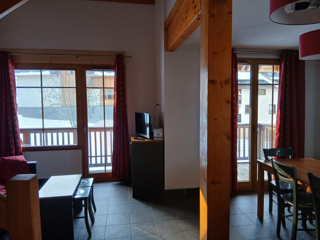 ST COLOMBAN DES VILLARDS. Dans résidence LES CHALETS DE BELLEDONNE, résidence de tourisme; bel appart.ement T3 en duplex 66 m2 P.de vie 25 m2. Coin nuit. 1 S.de bain. 1 WC Etage : 1 ch. 2 coins nuit. 1 S.d’eau avec wc. Chauf. Elec. Individuel. Casier à ski. Parking Taxe foncière 984 €/an; Vendu meublé style "montagne" Bail commercial en cours. Peut être résilié par le propriétaire (sur demande)